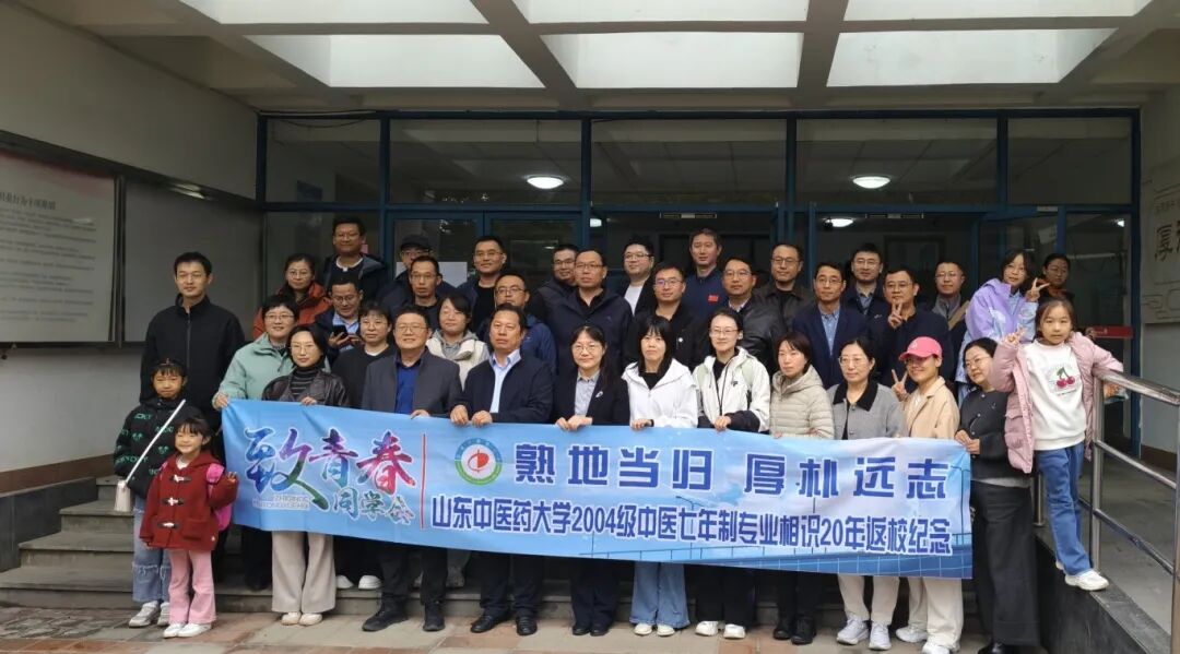 10月25日,中医学院2004级中医学七年制1、2班校友在长清校区举行入学20周年返校纪念活动。山东中医药大学党委委员、统战部部长朱姝(原辅导员),中医药创新研究院党委书记王志鹏(原辅导员),山东省妇幼保健院中医内科主任徐灿坤(原任课教师代表),中医学院党委副书记郭芳伶参加活动。