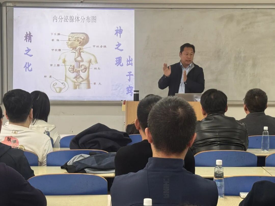 “渭城朝雨浥轻尘,客舍青青柳色新”,徐灿坤以《送元二使安西》的诗句寄寓欢迎之情。作为特殊的“一课”,他结合自身研究领域,与校友们共同探讨中医糖尿病防治与养生知识,让这场重逢更添专业共鸣。